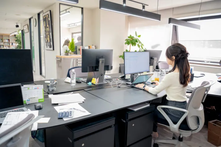 社員全員がワンフロアにいるので、何かあったら報告、連絡、相談がしやすく、他部署とのコミュニケーションも取りやすい環境です。