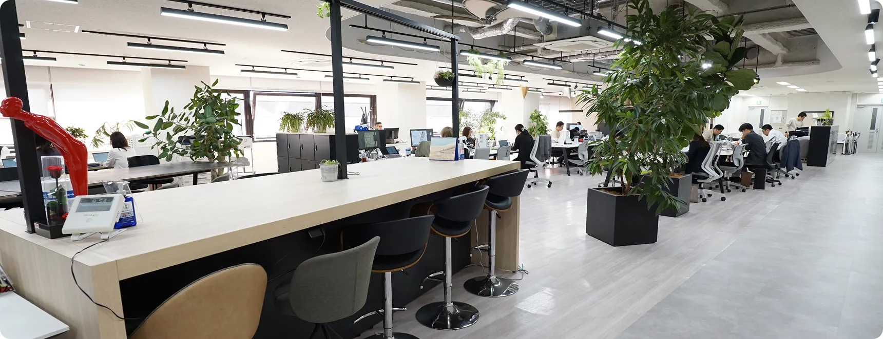 社員全員がワンフロアにいるので、何かあったら報告、連絡、相談がしやすく、他部署とのコミュニケーションも取りやすい環境です。